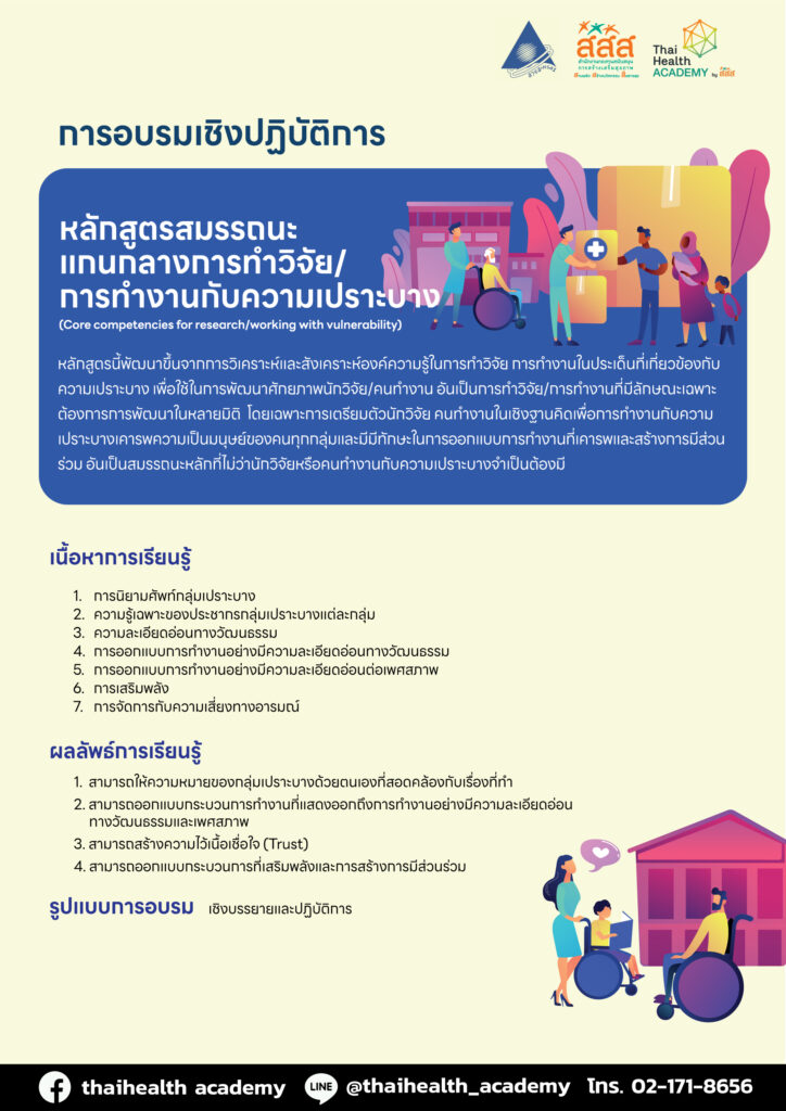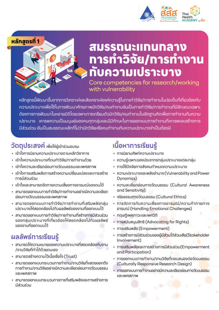 หลักสูตรที่ 1 หลักสูตรสมรรถนะแกนกลางการทำวิจัย/การทำงานกับความเปราะบาง (Core competencies for research/working with vulnerability)